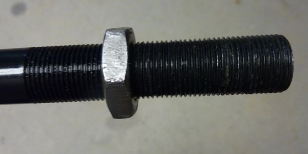 5. Install the TC jam nut from your old drag link onto the new drag link assembly. Remember that these are on the left side of the car and are LEFT HAND THREADS!